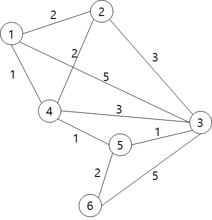 이번 게시물에서의 그래프 예시는 위와 같이 정했다. 먼저, 배열을 사용해서 다익스트라 알고리즘을 완성해보자.