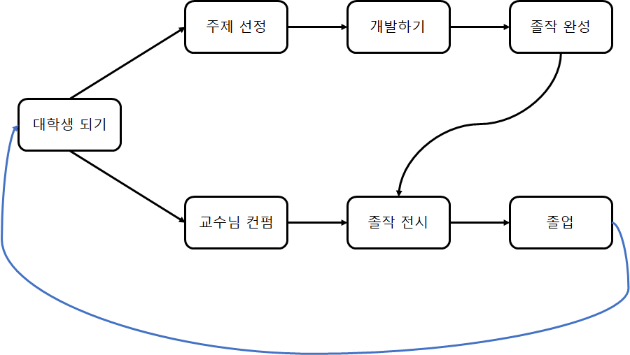 위상 정렬 : 대학생 되기 -> 교수님 컨펌 -> 주제 선정 -> 개발하기 -> 졸작 완성 -> 졸작 전시 -> 졸업