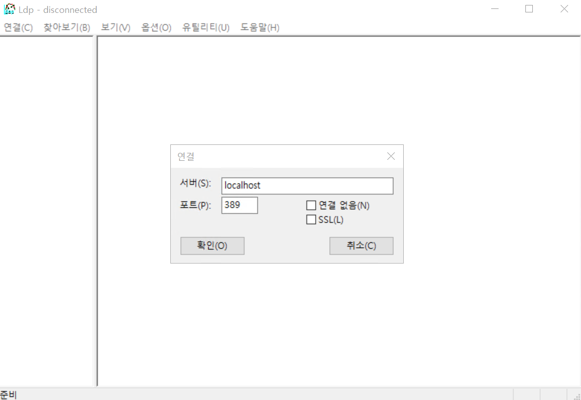 ldp.exe 상단의 연결 -> 연결을 클릭