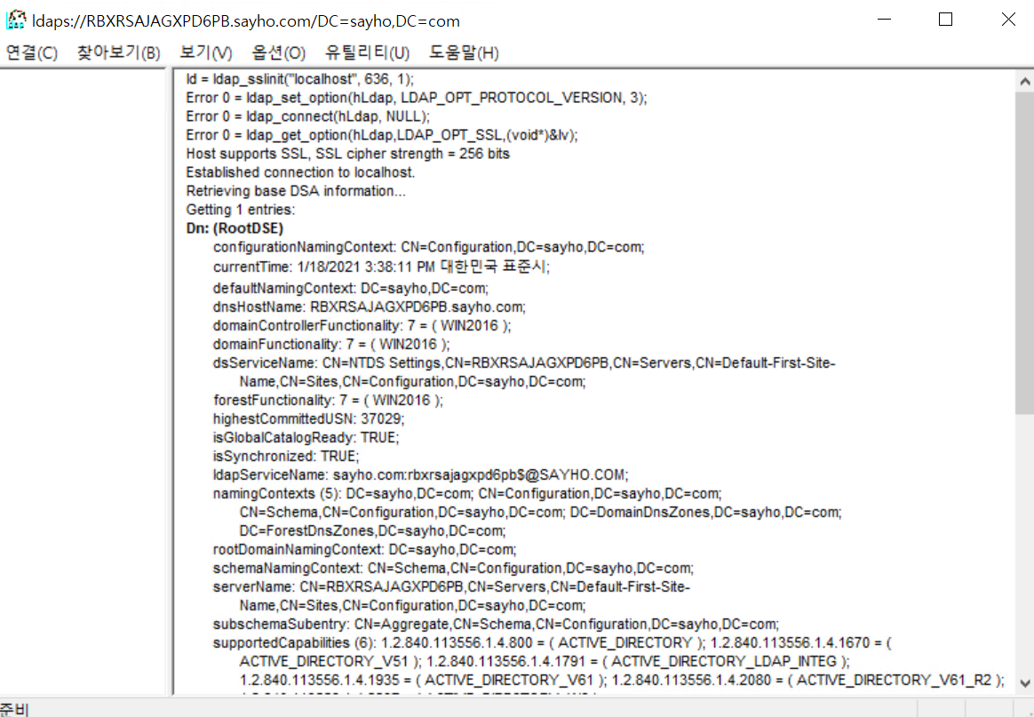 Active Directory를 구성한 서버에서 ldp.exe를 실행해보자.