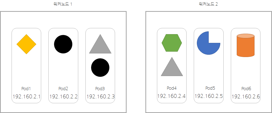 - 대신 여러 위치에 배치된 컨테이너 그룹이라는 팟(Pod)이라는 개념을 사용합니다.